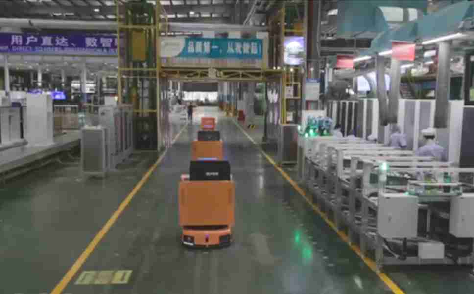为车载冰箱物流配送打造的智能解决方案,,,包含产中物流通过潜伏举升AMR搬运至线边,,产后成品物流智能仓储,,,流程包含产中物流智能齐套入库,,,线边安灯叫料AMR智能配送至线边,,,成品入库、、、、出库,,,,通过无人堆高车机器人,,,,智能仓储管理替代人工作业管理,,实现更高存储、、、、更高效率、、更具柔性化的解决方案。。。。